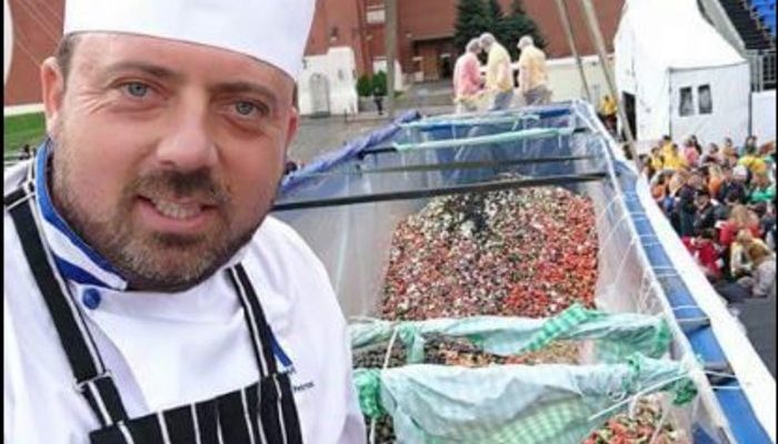 Η σαλάτα ζύγιζε συνολικά 20 τόνους και 100 κιλά, σπάζοντας το ρεκόρ Γκίνες. Μάλιστα, ο σεφ δεν παρέλειψε να αναφέρει την έμπνευσή του, καθώς το μότο που χρησιμοποίησε ήταν το «Greece on a dish», παρουσιάζοντας το δημιούργημά του, το οποίο τίμησαν αρκετοί Ρώσοι, αρκετοί εκ των οποίων είχαν και μέτρο σύγκρισης, καθώς είχαν επισκεφθεί στις διακοπές τους την Ελλάδα και είχαν γευτεί την περιβόητη χωριάτικη ελληνική σαλάτα.