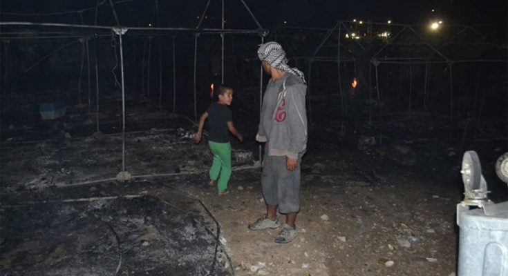 Καταστράφηκε το 60% του καταυλισμού – Σκέψεις να ναυλωθεί πλοίο για να φιλοξενήσει τους εκατοντάδες άστεγους, πλέον, πρόσφυγες – Στο νησί στέλνονται 2 διμοιρίες ΜΑΤ