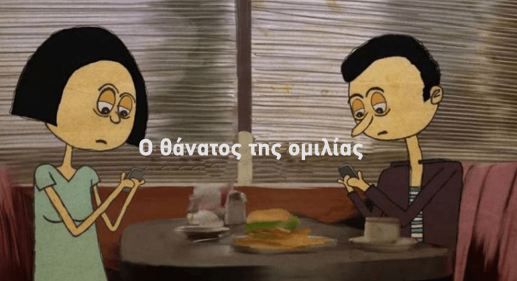 Όμως με την πρόοδο της τεχνολογίας έχουν αλλάξει πολλά. Μια καταπληκτική μικρού μήκους κινουμένων σχεδιών για την ποιότητα της επικοινωνίας σήμερα. Ο τίτλος της φυσικά «ο θάνατος της ομιλίας» και τα λέει όλα. Οι διαπροσωπικές σχέσεις έχουν αντικατασταθεί με εικονίδια και διάφορες συνομιλίες στο facebook, viber, iMessage, whatsapp κτλ. Όλοι σκυμμένοι πάνω από μια οθόνη, πληκτρολογώντας ασταμάτητα σαν υπνωτισμένοι. Υπερβολή ή όχι… έτσι όπως πάμε, ο θάνατος της ομιλίας δεν είναι μακριά.