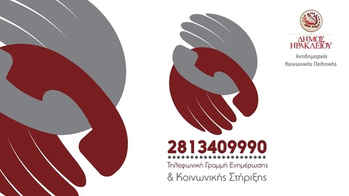 Παράλληλα τα τηλέφωνα της Αντιδημαρχίας Κοινωνικής Πολιτικής και όλης της Διεύθυνσης Κοινωνικής Ανάπτυξης του Δήμου Ηρακλείου (2813-409112- 113) συνεχίζουν να είναι στη διάθεση των συνδημοτών μας.