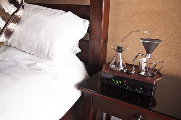 Στη βάση του βρίσκεται ένα κλασικό ψηφιακό ρολόι, αλλά στην επάνω πλευρά υπάρχει διάταξη όπου ζεσταίνεται το νερό και φιλτράρεται με τον καφέ μέσα σε γυάλινη κούπα, ενώ έχουν τοποθετηθεί και δύο μικρά συρτάρια για ζάχαρη και κρέμα. Ο χρήστης απλώς θα το βάλει σε λειτουργία πριν πέσει για ύπνο και τα υπόλοιπα θα τα αναλάβει ο καλύτερος… barista! Η τιμή του αναμένεται να φτάσει τα 300 περίπου ευρών αν και προς το παρόν ο δημιουργός έχει κατασκευάσει μόνο μία συσκευή, τη δική του!