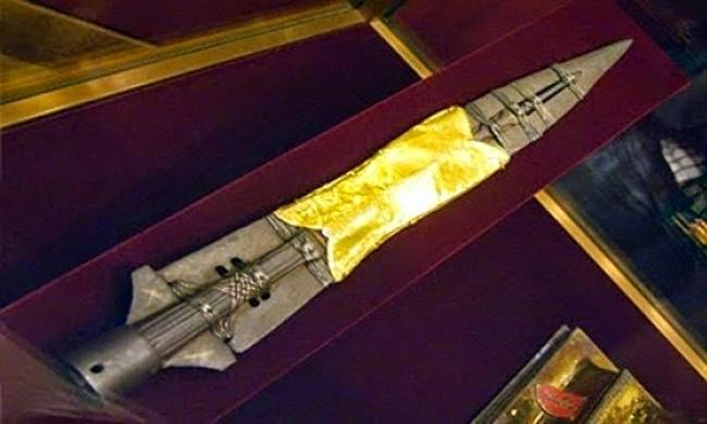 Πρόκειται για τη λόγχη που χρησιμοποιήθηκε από το Ρωμαίο εκατόνταρχο Λογγίνο για να τρυπήσει τη δεξιά πλευρά του Χριστού στο σταυρό.