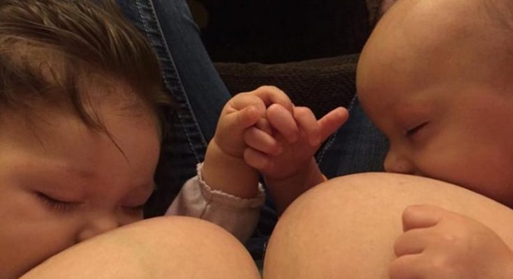 Όπως η ίδια ανέφερε σε αμερικάνικα MME, ενώ θήλαζε ταυτόχρονα τα δύο μωράκια, εκείνα πιάστηκαν χεράκι-χεράκι, ένα συγκινητικό στιγμιότυπο που θέλησε να αιχμαλωτίσει σε μια φωτογραφία, την οποία ανέβασε έπειτα στο Facebook.