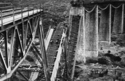 – Μην ανησυχείς, στρατηγέ… Ο παλαβός θα τα καταφέρει, του λέει δείχνοντας τον ασυγκράτητο Νικηφόρο. Με την ελασίτικη εφεδρεία ξαναρίχνονται στη μάχη οι δύο εδεσίτες ανθυπολοχαγοί Παπαχρήστου και Πετροπουλάκης και μερικοί από τους οπισθοχωρήσαντες εδεσίτες* μαζί τους και ο Πυρομάγλου. Το βόρειο βάθρο σε λίγο θα πέσει στα χέρια τους και αμέσως μετά ο Νικηφόρος θα στρέψει το τμήμα του εναντίον των ιταλικών ενισχύσεων που έρχονται με τρένο από το Λειανοκλάδι. Ο Άρης στον Σταθμό Διοίκησης, βέβαιος για την κατάληψη και του νότιου βάθρου, λέει στα συνεργεία των σαμποτέρ να κατέβουν στη χαράδρα:– Μη δίνετε σημασία στις ντουφεκιές, τραβάτε τον κατήφορο και κάντε τη δουλειά σας. Μην περιμένετε τη φωτοβολίδα.”