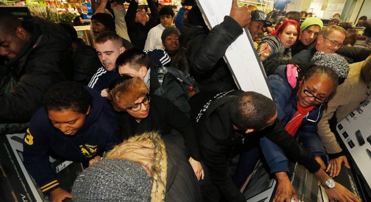 Ωστόσο, κανείς δε φαίνεται να το ψάχνει λίγο παραπάνω για το τί πραγματικά σημαίνει αυτή η “black Friday” τόσο σε σχέση με τις καταναλωτικές συνήθειες που διαμορφώνει, όσο και σε σχέση με τη δοκιμασία που συνιστά για τους εργαζόμενους στα καταστήματα. Ούτε και κάνει κάποιες αναφορές στις χαοτικές καταστάσεις που διαμορφώνονται μέσα στα καταστήματα (στο διαδίκτυο υπάρχουν άπειρα σχετικά videos) ή ακόμα και για τους θανάτους και τους τραυματισμούς που έχουν συντελεστεί και σχετίζονται με αυτή (7 και 98 αντίστοιχα τα τελευταία χρόνια στις ΗΠΑ – βλ.http://blackfridaydeathcount.com/). Οι καταναλωτές, που μπορεί να περιμένουν και ώρες έξω από τα μαγαζιά για να προλάβουν τις προσφορές, καταλήγουν να ποδοπατιούνται και να πλακώνονται κυριολεκτικά μεταξύ τους. Και βέβαια η μανία τους παίρνει σβάρνα και τους εργαζόμενους, που πέρα από τον υψηλό και εντατικοποιημένο φόρτο εργασίας που τους επιβάλλεται στο πλαίσιο της “black Friday”, έχουν να εξυπηρετήσουν-αντιμετωπίσουν τους λυσσασμένους καταναλωτές. Αλλά ουσιαστικά και τις σωματικές επιθέσεις τους στο πέρασμα τους από τους διαδρόμους στην αναζήτηση των προσφορών. Μάλιστα, το 2008 ένας 34χρονος εργάτης της Wal-Mart έχασε τη ζωή του, όταν ποδοπατήθηκε κυριολεκτικά από 200 περίπου καταναλωτές.