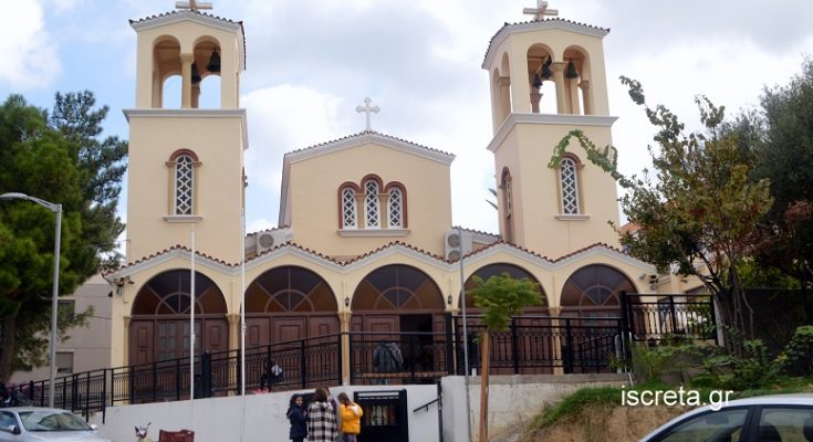 To 1956 οι κυρίες Άννα Νικηφόρου, Χαρίκλεια Καζάκη και Μαρία Παπαδάτου το γένος Εμμανουήλ Πορταλάκη παραχώρησαν έκταση 1.000 τ.μ. για την ανοικοδόμηση Ιερού Ναού.