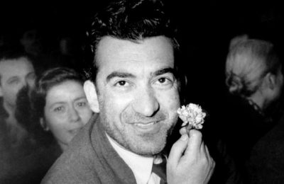 Ο άνθρωπος με το γαρύφαλλο: Ανατύπωση του σκίτσου του Πάμπλο Πικάσο με το ιδιόχειρο σημείωμα του ίδιου που βρίσκεται στην πίσω πλευρά. «Η τύχη του αυθεντικού αγνοείται», λέει ο Μπελογιάννης