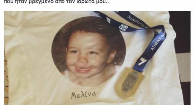 Ο κ. Παρασκάκης έτρεξε στο 1ο Μαραθώνιο Κρήτης με τη φωτογραφία της κόρης του τυπωμένη στο μπλουζάκι του.