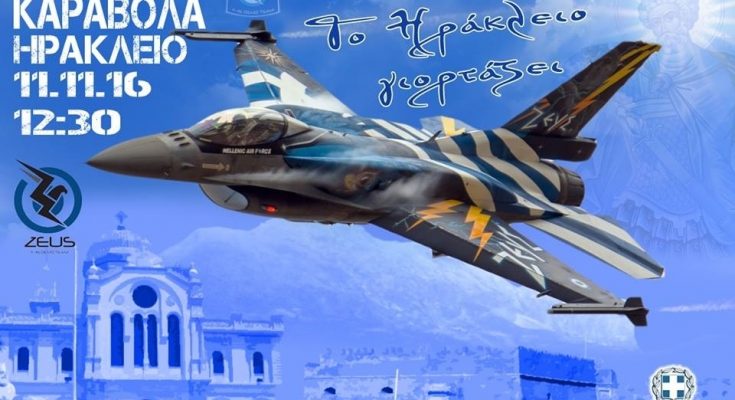 Μετά το πέρας της Θείας Λειτουργίας-Λιτανείας της εικόνας του Αγ. Μηνά  το Γενικό Επιτελείο Αεροπορίας σε συνεργασία με την Περιφέρεια Κρήτης ΠΕ Ηρακλείου οργανώνουν στις 12:30 εκδήλωση στην περιοχή «Καράβολα»  όπου θα συμμετέχει η ομάδα αεροπορικών επιδείξεων «ΖΕΥΣ» με αεροσκάφος F16 Block 52+ και χειριστή τον ιπτάμενο επισμηναγό Λουκά Θεοχαρόπουλο. Ειδικότερα ο πιλότος της Πολεμικής μας Αεροπορίας θα πετάξει από τα Χανιά και στη συνέχεια θα κατευθυνθεί στην παραλιακή ζώνη του Ηρακλείου όπου θα ακολουθήσει η αεροπορική επίδειξη.