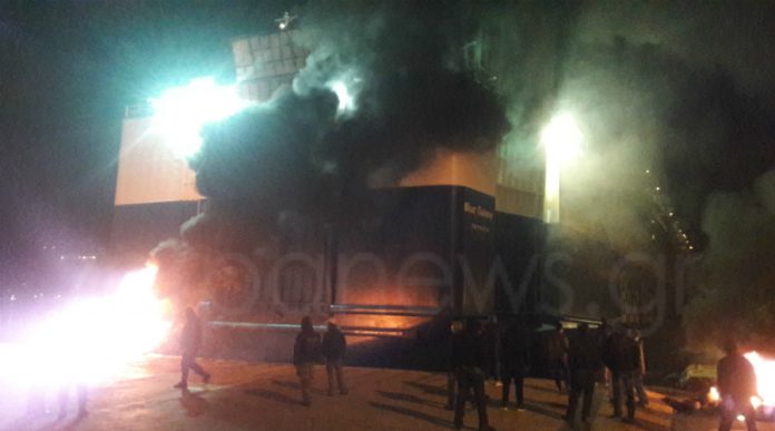 ΕΚΤΑΚΤΟ – Πανικός στο λιμάνι της Σούδας . Έκαψαν λάστιχα και ανάγκασαν το πλοίο να βγει στ΄ανοιχτά