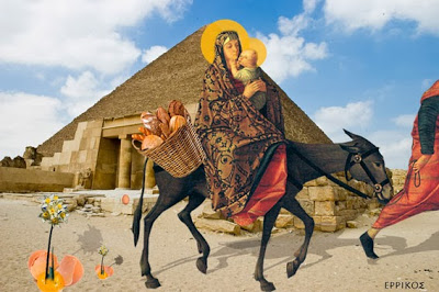 «Όταν έγινε η σφαγή από τον Ηρώδη για να γλυτώσει ο Χριστός τον πήρε η μάνα του και ο Ιωσήφ και έφυγαν για την Αίγυπτο. Είχαν αυγά φορτωμένα στο σακούλι τους και στο δρόμο έπεσαν.  Εκεί που έπεσαν φύτρωσαν τα μανούσα και για αυτό έχουνε τα χρώματα του αυγού το άσπρο και του κρόκου» .