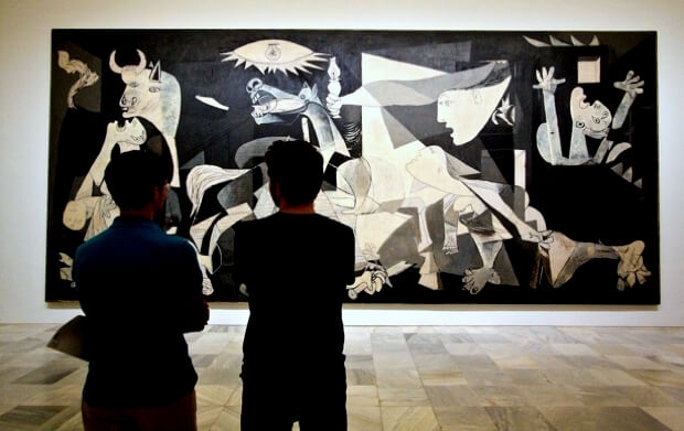 Ὁ Πικάσο, βαθιὰ δημοκρατικός, ἐπηρεασμένος ἀπὸ τὴ φρίκη τοῦ πολέμου, ζωγραφίζει μὲ θέμα τὴν «ΓΚΟΥΕΡΝΙΚΑ» ἕνα ἔργο μνημειακῶν διαστάσεων, ὕψος 3,5 μέτρα καὶ πλάτος 7,5 μέτρα.