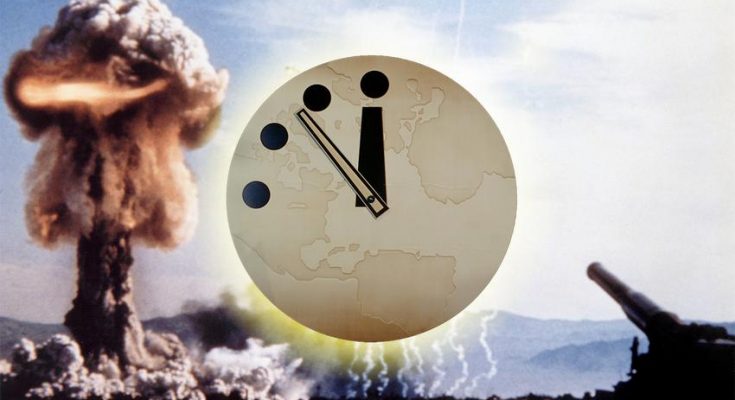 Για λόγους σύγκρισης, το ρολόι ορίστηκε στα «τρία λεπτά πριν από τα μεσάνυχτα κατά τη διάρκεια της δοκιμής της βόμβας υδρογόνου στον Ψυχρό Πόλεμο και τις πιο σκοτεινές ώρες της δεκαετίας του ’80 όταν οι ΗΠΑ και οι Σοβιετικές κυβερνήσεις διέκοψαν κάθε διάλογο.