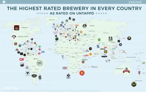 Το Αμερικάνικο VINEPAIR (από τις πλέον δημοφιλείς διαδραστικές πλατφόρμες ενημέρωσης γύρω από την παγκόσμια αγορά ποτών) δημοσίευσε πρόσφατα ένα χάρτη http://vinepair.com/articles/map-highest-rated-brewery-every-country-2017 με τις κορυφαίες ζυθοποιίες ανά χώρα σύμφωνα με τη βαθμολογία των χρηστών του www.untappd.com, ενός απο τα μεγαλύτερα παγκοσμίως κοινωνικά δίκτυα φίλων της μπίρας.
