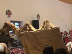 - Η καμήλα, περίτεχνα φτιαγμένη με τις μεγάλες καμπούρες της και το τρομακτικό κεφάλι χόρεψε στους ρυθμούς της μουσικής συνοδευόμενη από τον καμηλιέρη της.