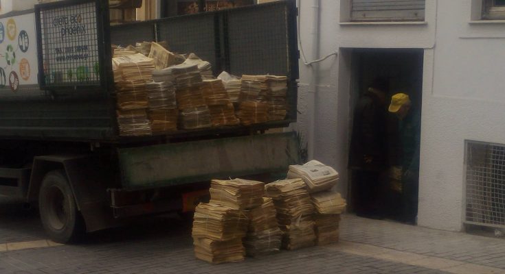 τέλος εποχής για την εφημερίδα Μεσόγειο, παλαιές εφημερίδες μεταφέρονταν σήμερα στην ανακύκλωση από τα υπόγεια.