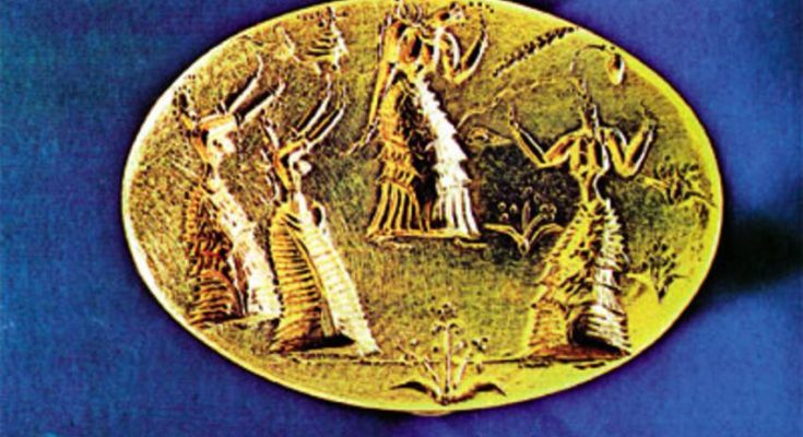 Ενας γυναικείος χορός με τριγωνική διάταξη των χορευτριών φαίνεται ότι αγαπήθηκε εξίσου από τους Μινωίτες και τους Μυκηναίους. Εκτός από τον σχηματισμό, άλλα χαρακτηριστικά στοιχεία της όρχησης είναι η χειρονομία των λυγισμένων χεριών στους γοφούς, η ενδυμασία και το περιλαίμιο.