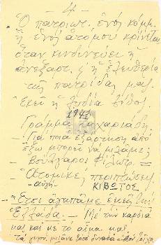 Αυτός ο μονόπλευρος εμφύλιος πόλεμος κατά των οπαδών της αριστ. θα φέρει νέες μεγάλες συμφ. στην Ελλ. Ενώ αν υπήρχε καλή θέληση από την πλευρά της δεξιάς το πρόβλημα της σωτηρίας της άτυχης χώρας μας και του λαού της θα ήταν αρκετά απλό γιατί κρίνεται στις λέξεις: Γενική αμνηστία, Δημοκρατία, Ειρήνη και μέτρα για τη βελτίωση του βιωτικού επιπέδου του λαού. Αλλά ποια κυβέρνηση θα εφαρμόσει ένα τέτοιο πρόγραμμα; Ιδού το ερώτημα όπως λέει και ο μεγάλος Αγγλος ποιητής. That is the question».