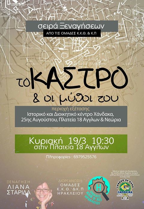 ,Η ΟΡΓΑΝΩΤΙΚΗ ΕΠΙΤΡΟΠΗ των ομάδων του Κυνηγιού Κρυμμένου θησαυρού Ηρακλειου σας παρουσιάζουμε την 4η κατά σειρά Ξενάγηση , της σειράς ξεναγησεων “Το Κάστρο και οι Μύθοι του” με οδηγό την κυρία Λιαννα Σταρίδα (Αρχαιολογο).
