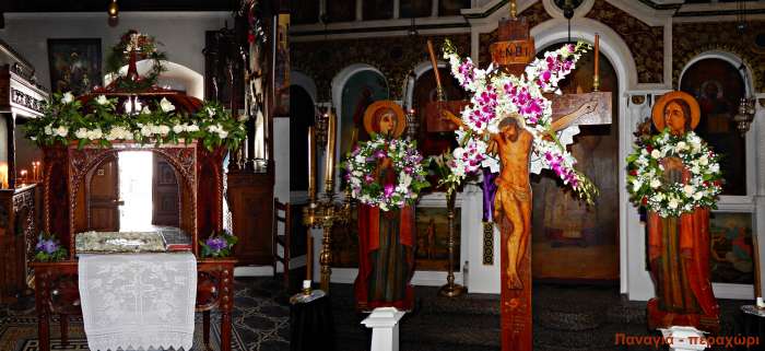 Οι γυναίκες σε όλες τις ενορίες αφιέρωσαν πολλές ώρες στις ετοιμασίες του Σταυρού και του Επιτάφιου, το βράδυ της Μεγάλης Πέμπτης μετά τον βραδινό Εσπερινό και το αποτέλεσμα για μια ακόμα χρονιά είναι υπέροχο.