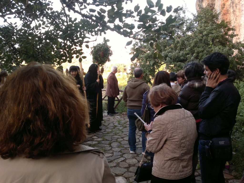 Αφού ολοκληρώθηκε η 2η Ανάσταση στην εκκλησία του Σωτήρος , η Ηγουμένη Θεοξένη, κάλεσε το εκκλησίασμα να ακολουθήσει στη λιτανεία που θα γινόταν μέχρι το παλιό Μοναστήρι της Αγίας Κυριακής.