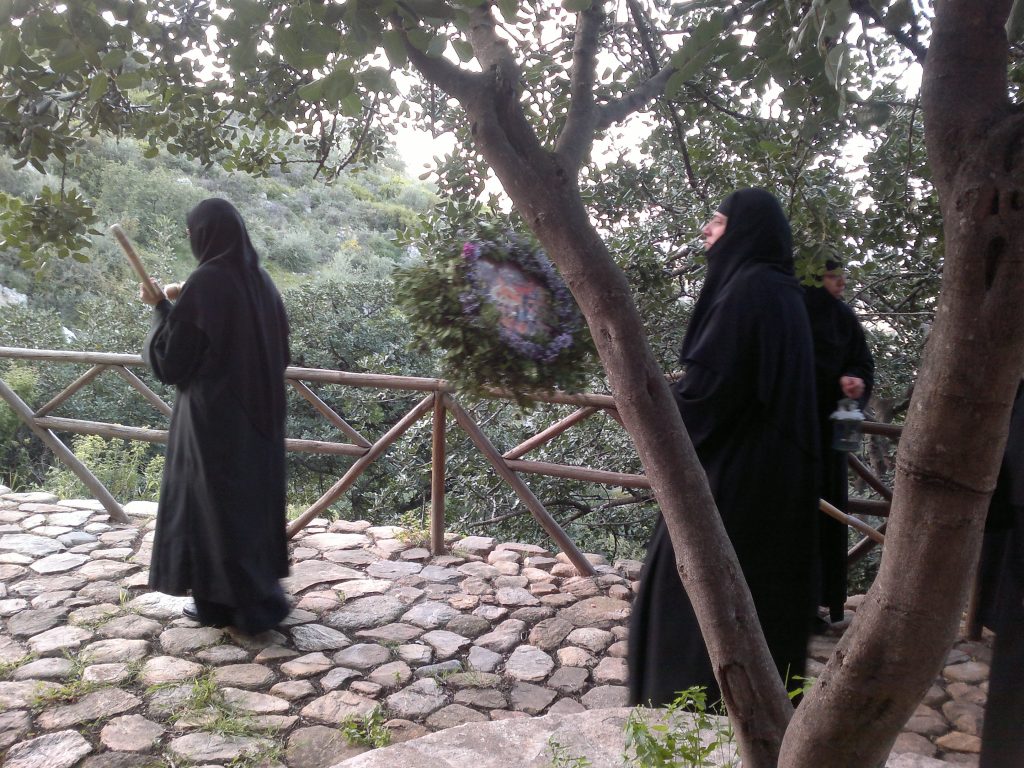 Ο βηματισμός τους ήταν αρκετά γρήγορος και έδειχνε γυναίκες που είχαν ασκηθεί αρκετά σ’ αυτήν την πορεία, αφού σίγουρα αποτελούσε δοκιμασία του μοναστικού βίου, που οι ίδιες είχαν επιλέξει με απόλυτη συνειδητότητα, αμέσως μετά την ολοκλήρωση των πανεπιστημιακών τους σπουδών.
