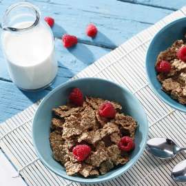 Αν και τα δημητριακά είναι εκ φύσεως χαμηλά σε λιπαρά, δεν είναι όλα τα δημητριακά πρωινού χαμηλά σε λιπαρά! Συνήθως για τα απλά δημητριακά πρωινού ολικής άλεσης, η τιμή των λιπαρών είναι κάτω από 2%. Ακόμα όμως και για δημητριακά με σοκολάτα, για να είναι ένα ισορροπημένο πρωινό γεύμα και όχι γλύκισμα, δεν πρέπει να ξεπερνά το 7-10%.