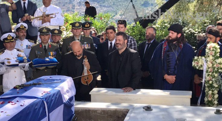 Πάνω από τον τάφο κρητικοί ριζίτες ντυμένοι στα μαύρα, τραγούδησαν για τελευταία φορά τα αγαπημένο του ριζίτικο, «Σε ψηλό βουνό».