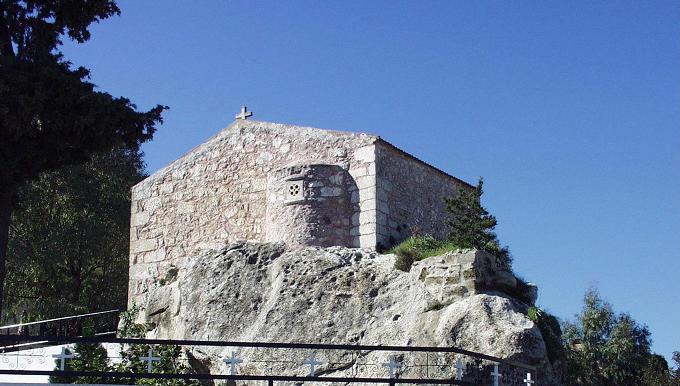 Στην είσοδο του χωριού Αγία Βαρβάρα, δίπλα στον κεντρικό δρόμο, που οδηγεί από το Ηράκλειο στη Μεσαρά, βρίσκεται κτισμένος πάνω σε βράχο ο ναός του Προφήτη Ηλία. Ο βράχος αυτός ήταν διπλάσιος, αλλά χωρίστηκε στη μέση και κατέπεσε πριν από 100 περίπου χρόνια. Βρίσκεται στη μέση της Κρήτης και κατά μήκος και κατά πλάτος (φάλι της Κρήτης )