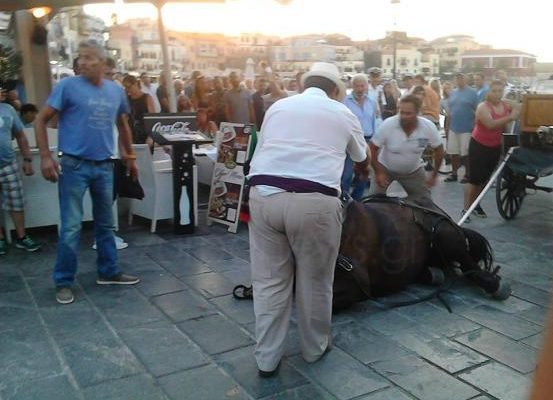 «Καθόμασταν σε διπλανή καφετέρια όταν ξαφνικά ακούσαμε έναν πολύ δυνατό κρότο. Ήταν τόσο μεγάλο το μπαμ που νομίζαμε ότι είχε πέσει κάποιο κτήριο» περιγράφει στο zarpanews.gr η κα Μάρω που ήταν μπροστά στο περιστατικό. «Αμέσως μετά επικράτησε πανζουρλισμός. Οι τουρίστες άρχισαν να φωνάζουν ‘Ντροπή σας! Εξοντώνετε τα ζώα!’. Έπειτα κάποιοι μας απομάκρυναν, δεν μας άφησαν ούτε να πλησιάσουμε ούτε να βγάλουμε φωτογραφίες» περιγράφει. «Φαίνεται πως δεν του είχαν δώσει νερό για ώρες γιατί δεν μπορούσε να σηκωθεί με τίποτα. Προσπαθούσαν να το σηκώσουν όμως ξανάπεφτε. Έπειτα το έλυσαν, του έδωσαν και ήπιε έναν κουβά νερό και μετά συνήλθε» προσθέτει.