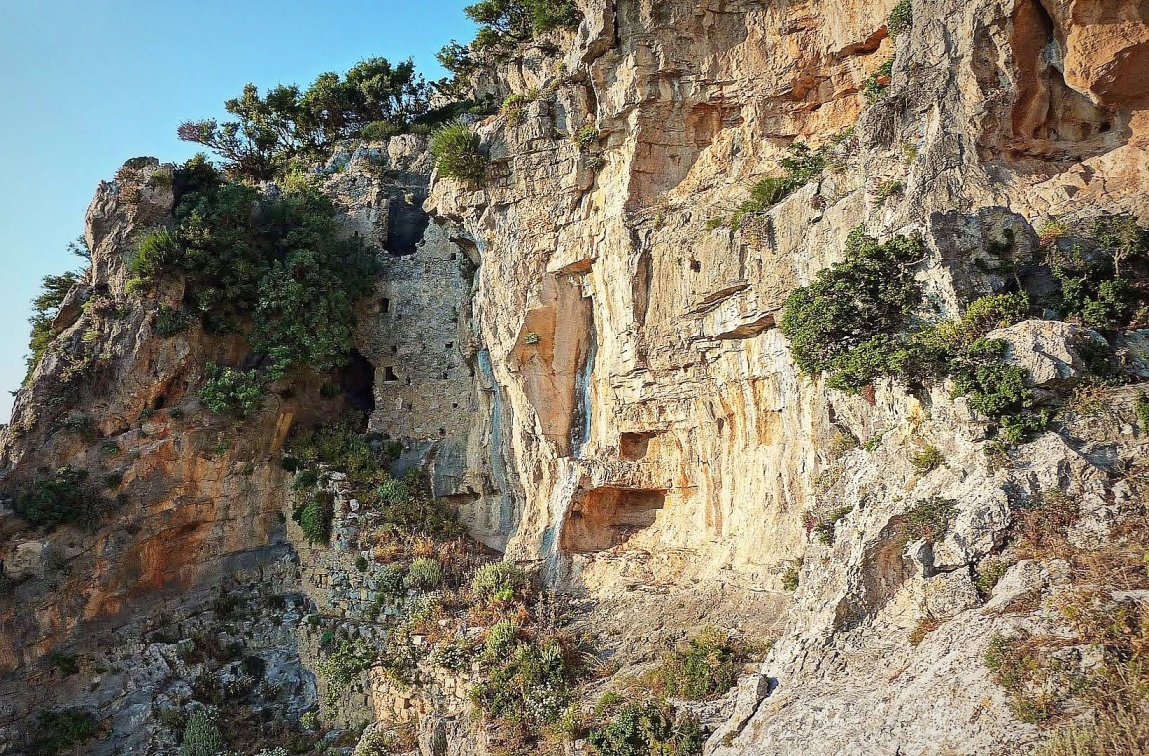 Στη δυτική απόκρημνη πλαγιά του Γιούχτα είναι σκαρφαλωμένο ένα παλιό ερειπωμένο μοναστήρι, «Των Καλογράδων τα Κελιά». Η θέα από το ξωκλήσι, που είναι χτισμένο πάνω από τους γκρεμούς του Γιούχτα, είναι εκπληκτική, αφού έχει εποπτεία σε όλα τα σημεία του ορίζοντα. Το κτίριο είναι τριώροφο κι έχει χτιστεί σε ένα πολύ δύσβατο και μη ορατό σημείο. Πολλοί πιστεύουν ότι εκεί ήταν και το ερημητήριο του Αγίου Παύλου.