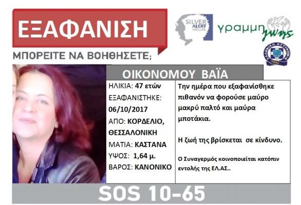 Τα ίχνη της Βαϊας Οικονόμου είχαν χαθεί την Παρασκευή 6 Οκτωβρίου και παρά τον συναγερμό που σήμανε από την «Γραμμή ζωής» δεν βρέθηκε κανένα στοιχείο τις μέρες που ακολούθησαν.