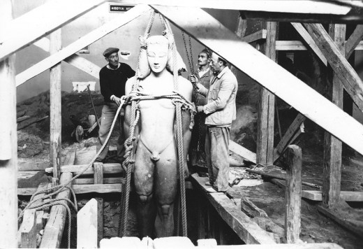 Απόκρυψη του Κούρου του Σουνίου, αγάλματος του 600 π.Χ., κάτω από δάπεδο της αίθουσας του Αρχαιολογικού Μουσείου