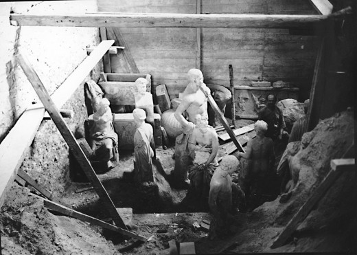 Η πρωτοφανής -και βαθιά συναισθηματική- διαδικασία κατάχωσης αρχαιοτήτων από το Εθνικό Αρχαιολογικό Μουσείο λίγο πριν από την Κατοχή, καταγράφεται στην έκθεση φωτογραφίας που παρουσιάζει το μουσείο με ντοκουμέντα από το μοναδικού πλούτου αρχείο του