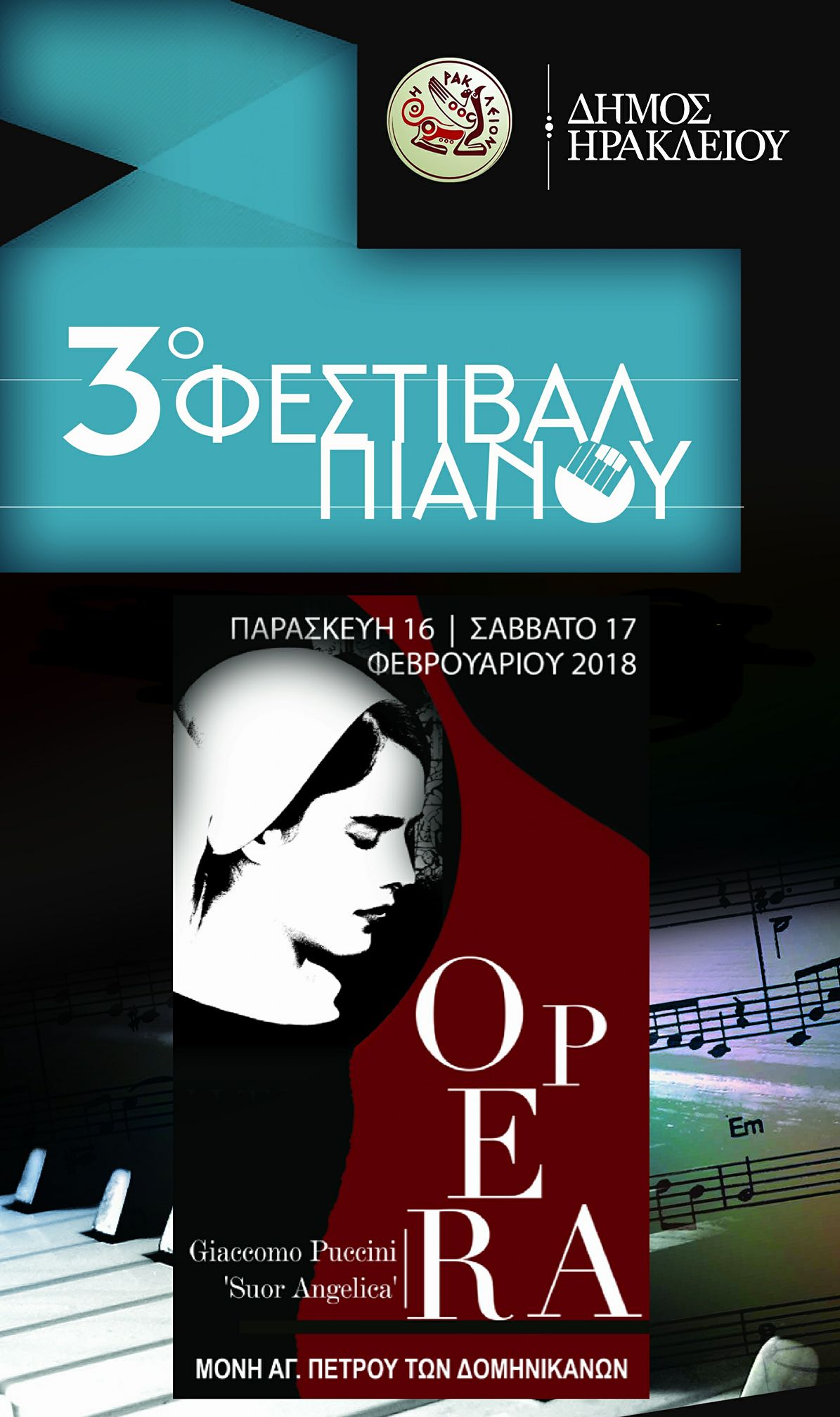 Η δημοφιλής μονόπρακτη όπερα του Giacomo Puccini «Suor Angelica» παρουσιάζεται για πρώτη φορά στο Ηράκλειο, στο πλαίσιο του 3ου Φεστιβάλ πιάνου, που διοργανώνει ο Δήμος Ηρακλείου, το Σάββατο 17 Φεβρουαρίου, στις 20:30.