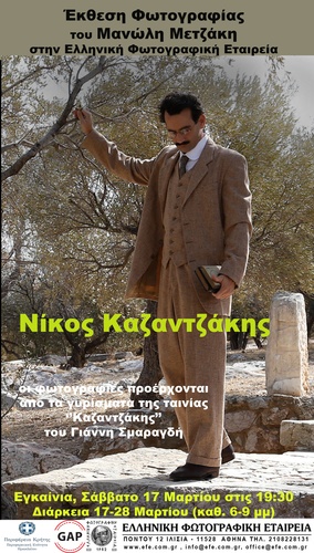 Η έκθεση αποτελείται από φωτογραφίες που τραβήχτηκαν κατά την διάρκεια των γυρισμάτων της ταινίας του σκηνοθέτη κ. Γιάννη Σμαραγδή “Νίκος Καζαντζάκης”