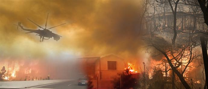 Ενδεικτική είναι η εικόνα που μετεφερε ο Δημήτρης Κοτταρίδης, με το μεγάλο πύρινο μέτωπο που “προελαύνει” σε απόσταση αναπνοής από τα σπίτια σε μια μεγάλη ακτίνα που έφθανε μέχρι την παραλία της Ραφήνας.