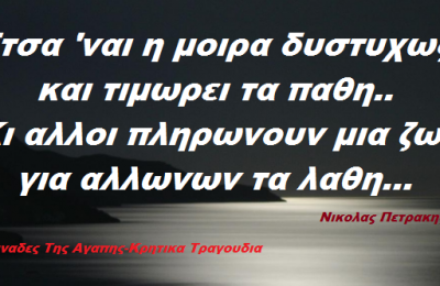 “Ετσά ΄ναι η μοίρα δυστυχώς, και τιμωρεί τα πάθη κι άλλοι πληρώνουν μια ζωή για αλλωνών τα...