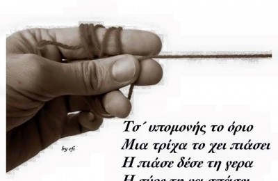 “Τσ΄ υπομονής το όριο, μια τρίχα το ΄χει πιάσει ή πιάσε δέσε τη γερά, ή σύρε τη να...