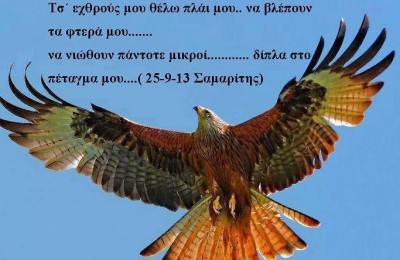 “Τσ΄εχθρούς μου θέλω πλάι μου να βλέπουν τα φτερά μου να νιώθουν πάντοτε μικροί δίπλα στο...