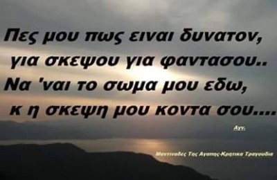 Πες μου πως είναι δυνατόν για σκέψου για φαντάσου να ναι το σ΄μα μου εδώ κι σκέψη μου κοντά...