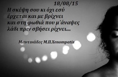 Η σκέψη σου κι όχι εσύ έρχεται και με βρίχνει και στη φωθιά που μ΄άναψες λάδι πριν σβήσει...