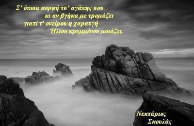 Σ΄’οποια κορφή τσ΄αγάπης σου κι αν βγήκα με τρομάζει γιατί τ΄ονείρου η χαραυγή ήλιου...