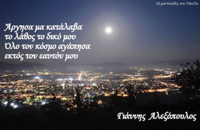 Άργησα μα κατάλαβα το λάθος το δικό μου όλο τον κόσμο αγάπησα εκτός τον εαυτό μου