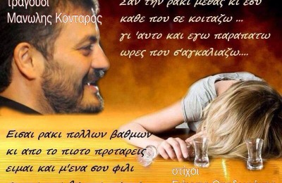 “Σαν την ρακή μεθάς κι εσύ κάθε που σε κοιτάζω γι΄αυτό και γω παραπατώ ώρες που σ΄...