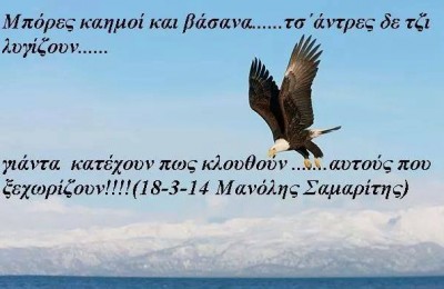 “Μπόρες καημοί και βάσανα τσ΄ άντρες δε τζι λυγίζουν γιάντα κατέχουν πως κλουθούν αυτούς...