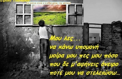 ” Μου λες να κάνω υπομονή μοίρα μου πες μου πόσο που δε μ΄αφήνεις όνειρο ποτέ μου να...
