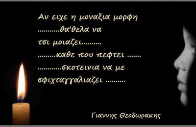 “Aν είχε η μοναξιά μορφή θα’ θελα να τσι μοιάζει κάθε που πέφτει σκοτεινιά να με...