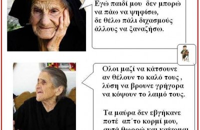 Εγώ παιδί μου δεν μπορώ να πάω να πάω να ψηφίσω, δε θέλω πάλι διχασμούς άλλους να ξαναζήσω...