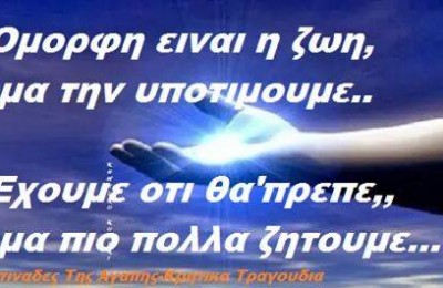 “Όμορφη είναι η ζωή , μα την υποτιμούμε έχουμε ότι θα΄πρεπε μα πιο πολλά ζητούμε”